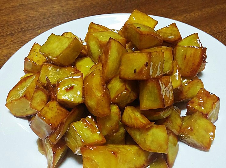 - 마무리 : 고구마맛탕을 접시에 담고, 원한다면 검정깨를 뿌려 장식합니다.