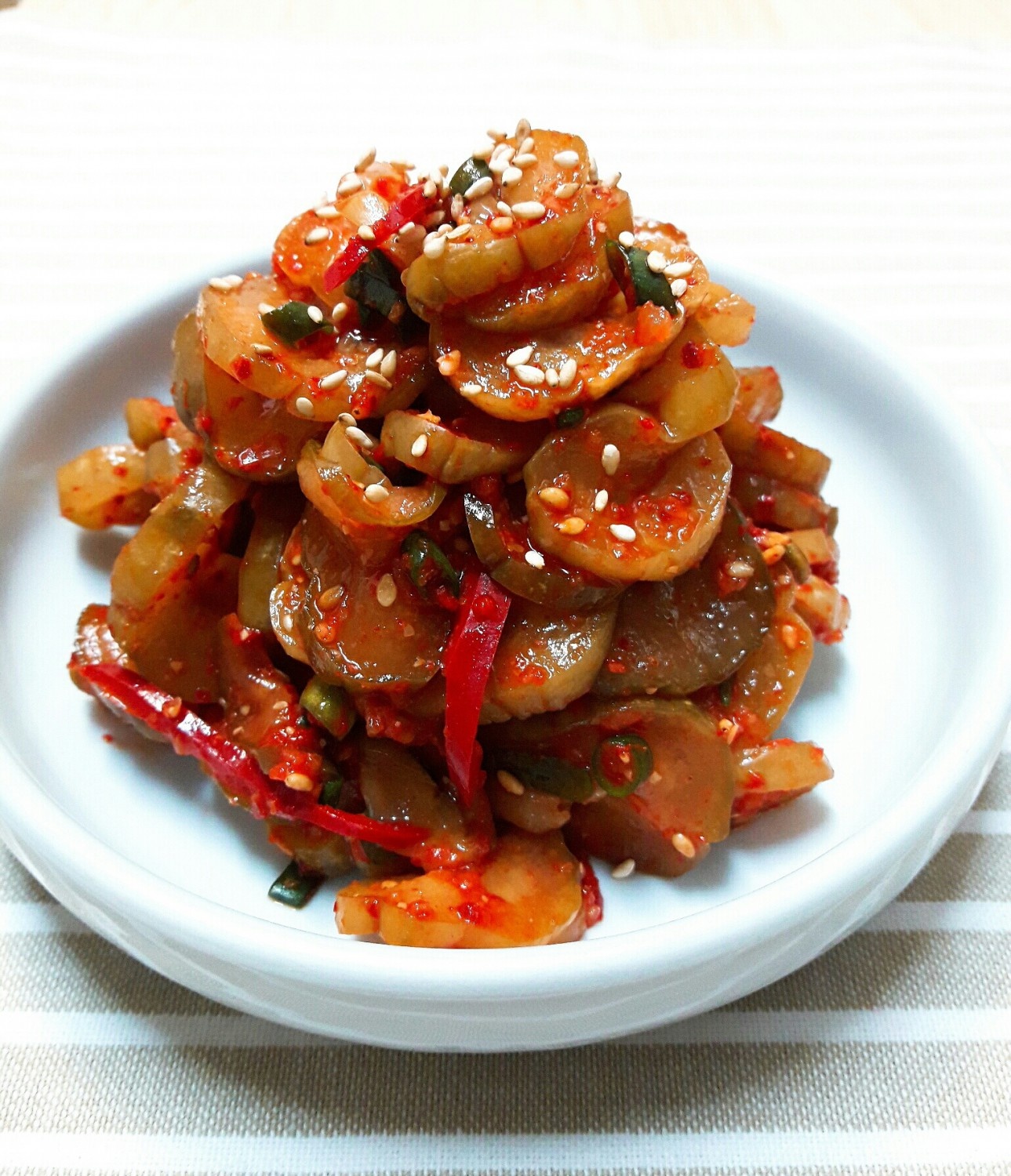 - 마무리 : 마지막으로 통깨를 뿌려주면 오이지무침이 완성됩니다.