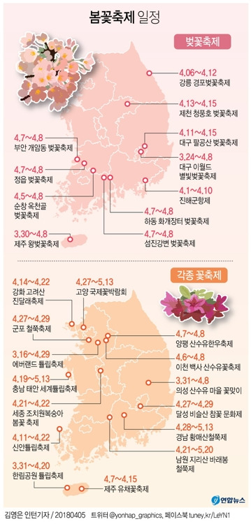 전국에서 열리는 대표적인 봄꽃축제의 일정을 안내해 드리겠습니다.